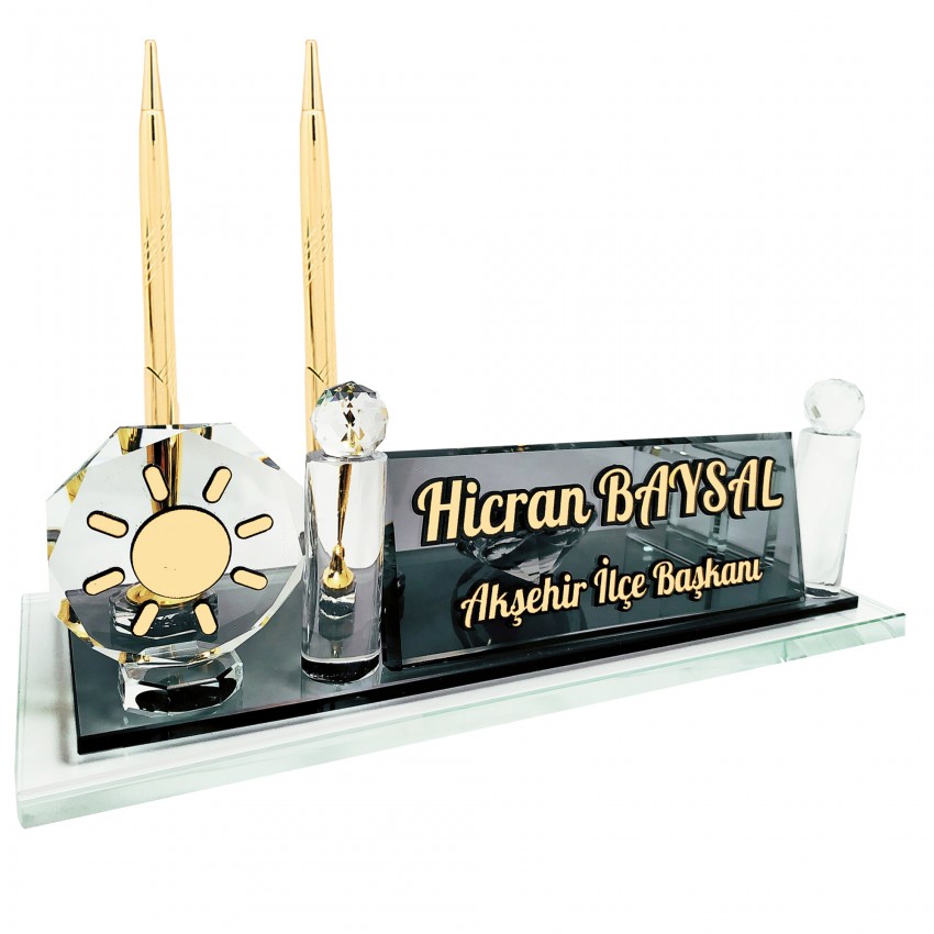 İyi Parti Başkana Hediye Kristal Masa Üstü İsimlik